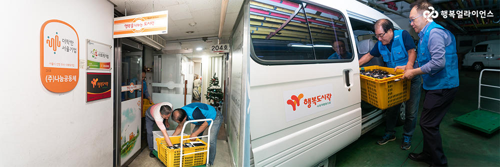 아이들이 하루라도 끼니를 거르지 않도록, 행복도시락센터에서 포장된 도시락은 매일매일 자원봉사자 분들의 손을 거쳐 결식우려아동의 가정 앞에 배달 됩니다. 특히 올해 4월 말부터 ‘서울시50플러스재단’을 통해 지원해주신 자원봉사자 분들이 배달 봉사에 참여하고 있는데요. 고정적으로 약 30개 가정의 아이들을 위해 도시락을 배달하고 있습니다. 자원봉사자 분들은 2인 1조로 한 팀이 되어 차량으로 이동하게 되는데요, 대부분 차로 배달을 하지만, 자동차가 들어갈 수 없는 경우에는 자원봉사자가 도보로 이동해 각 가정 문 앞에 도시락을 걸어두고 옵니다.